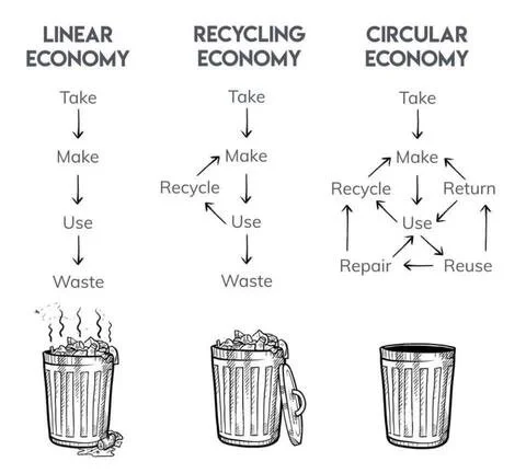 A linear economy is inherently wasteful; resources & materials flow in a straight line from extraction/use to the landfill.