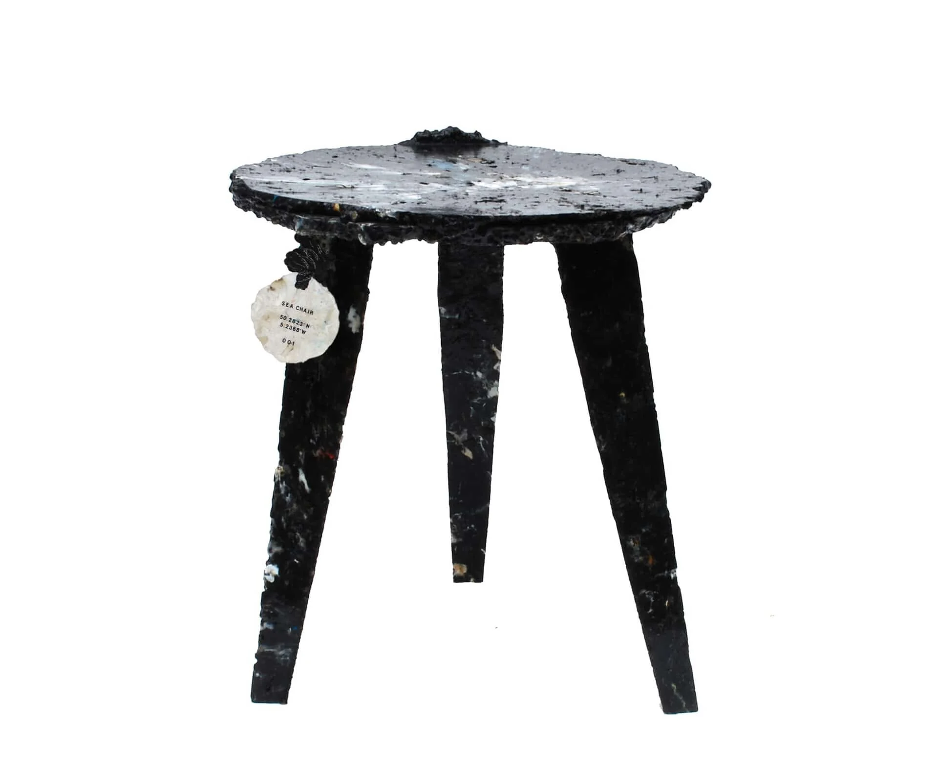 Sea Chair is made entirely from plastic recovered from the ocean. Together with local fishermen, the plastic is collected and made into a stool at sea. A project of Studio Swine.