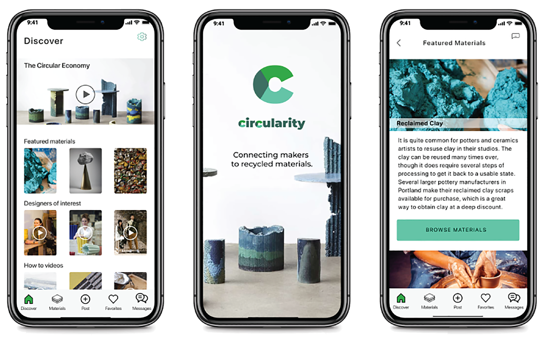 Circularity is an iOS mobile application that helps makers find recycled materials for their projects and gives manufacturers a platform to share materials that would otherwise go to the landfill. The app aims to be a foundational step in the creation of systems that support a circular economy.