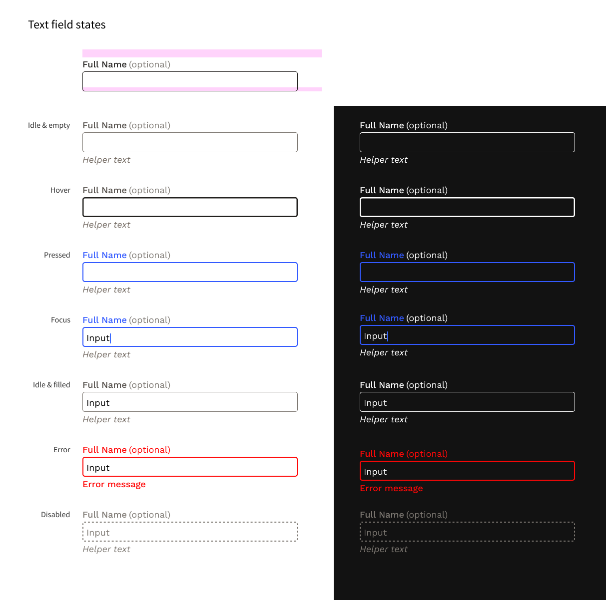 Development of a design system for the web app/native app, including typography, colors, components and states, media, and icons. A sampling of this design system is below.